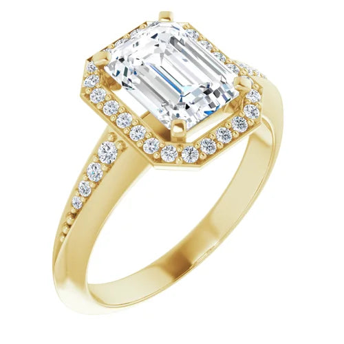 14K Yellow Gold LG 1 Ct E Color VS1 Quality Emerald Knife Edge Halo-Style Engagement Ring
