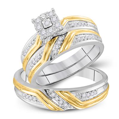14KT YELLOW GOLD HIS HERS ROUND DIAMOND CROSS MATCHING WEDDING SET 1/5 CTTW