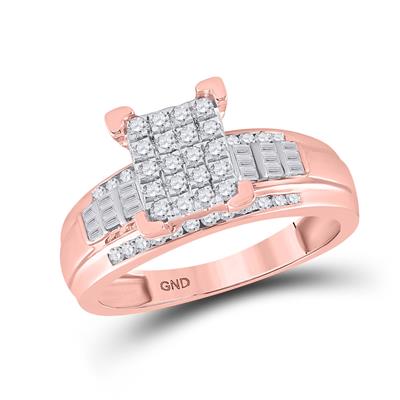 10KT ROSE GOLD ROUND DIAMOND HEART BRIDAL WEDDING RING BAND SET 1/4 CTTW