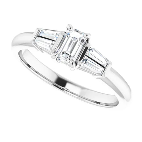 Certified 14K White Gold LG 1 Ct E Color VS1 Quality Emerald Engagement Ring