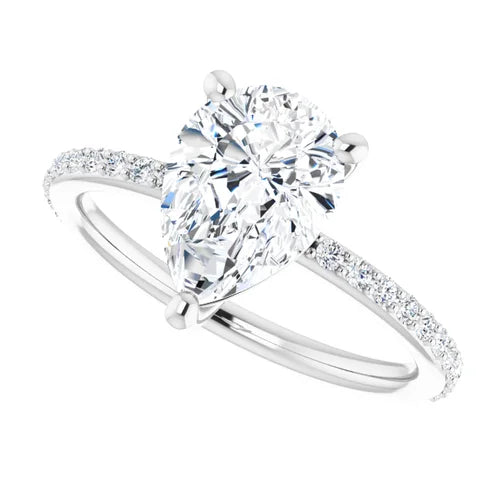 Certified 14K White Gold 1 Ct E Color Pear LG VVS2 Quality Engagement Ring