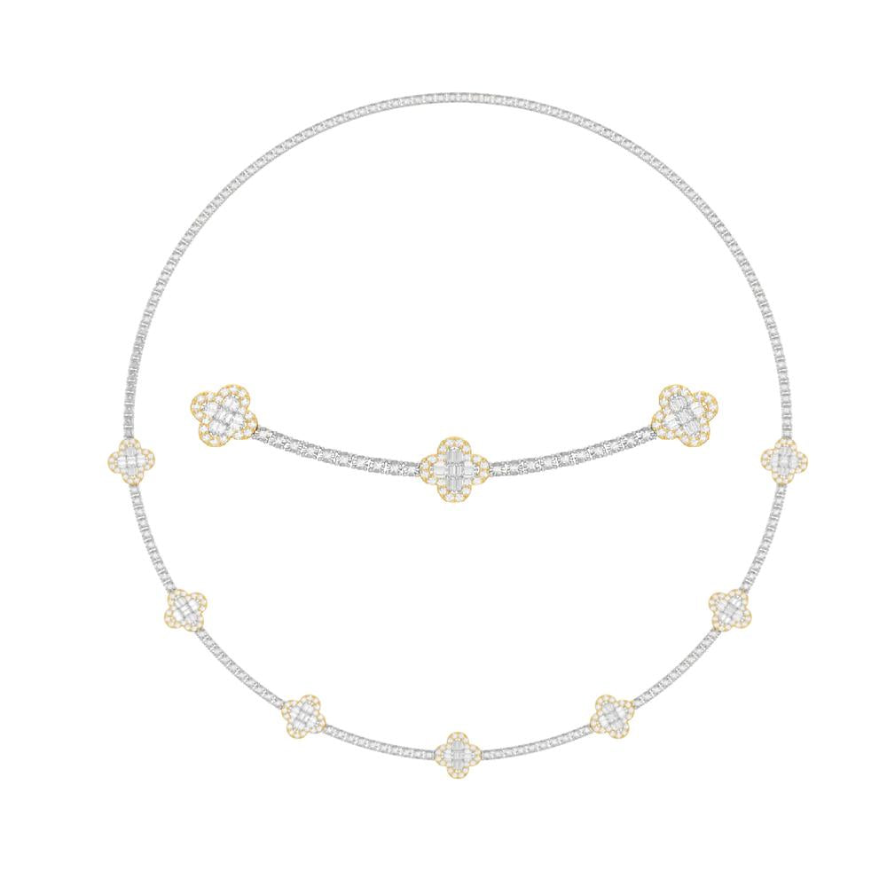 10KT Two-Tone (White and Yellow) Gold 2.10 Carat Flower Necklace-1430021-WY