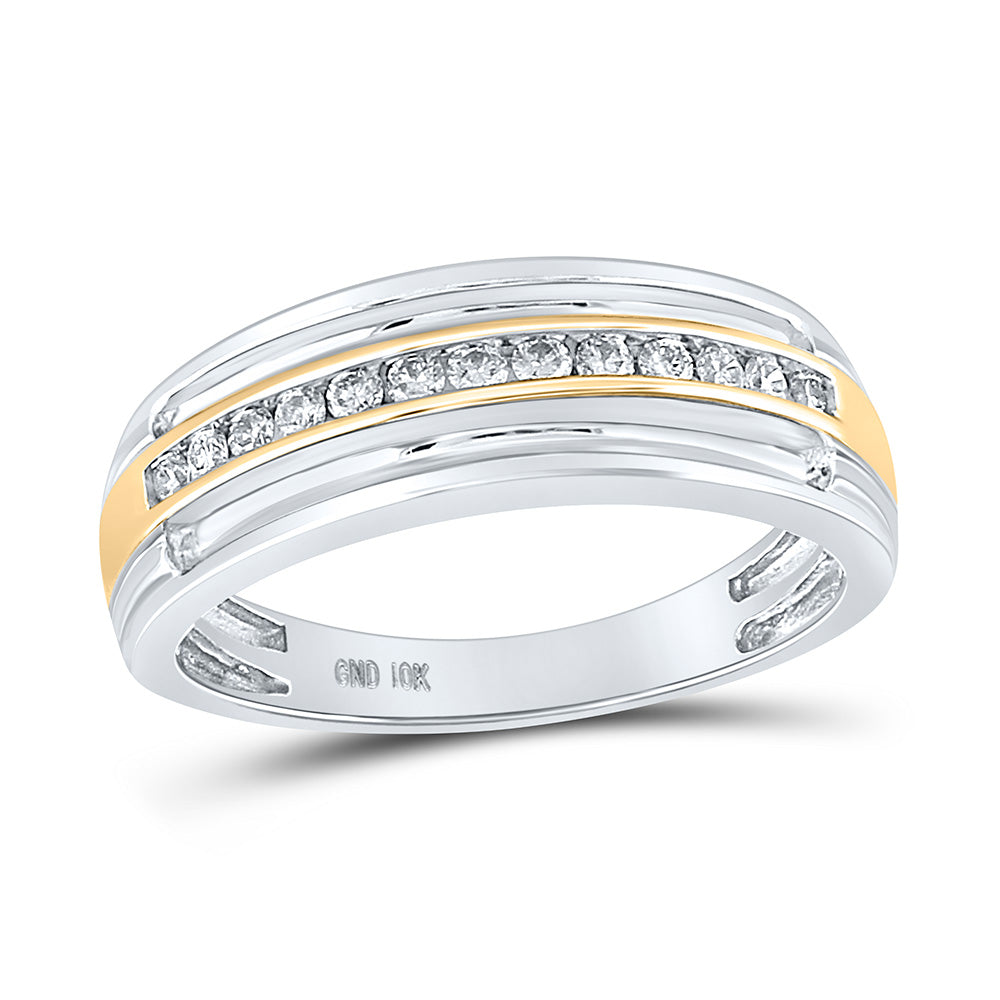 10KT TWO-TONE WHITE GOLD MENS ROUND DIAMOND WEDDING ANNIVERSARY BAND RING 1/4 CTTW