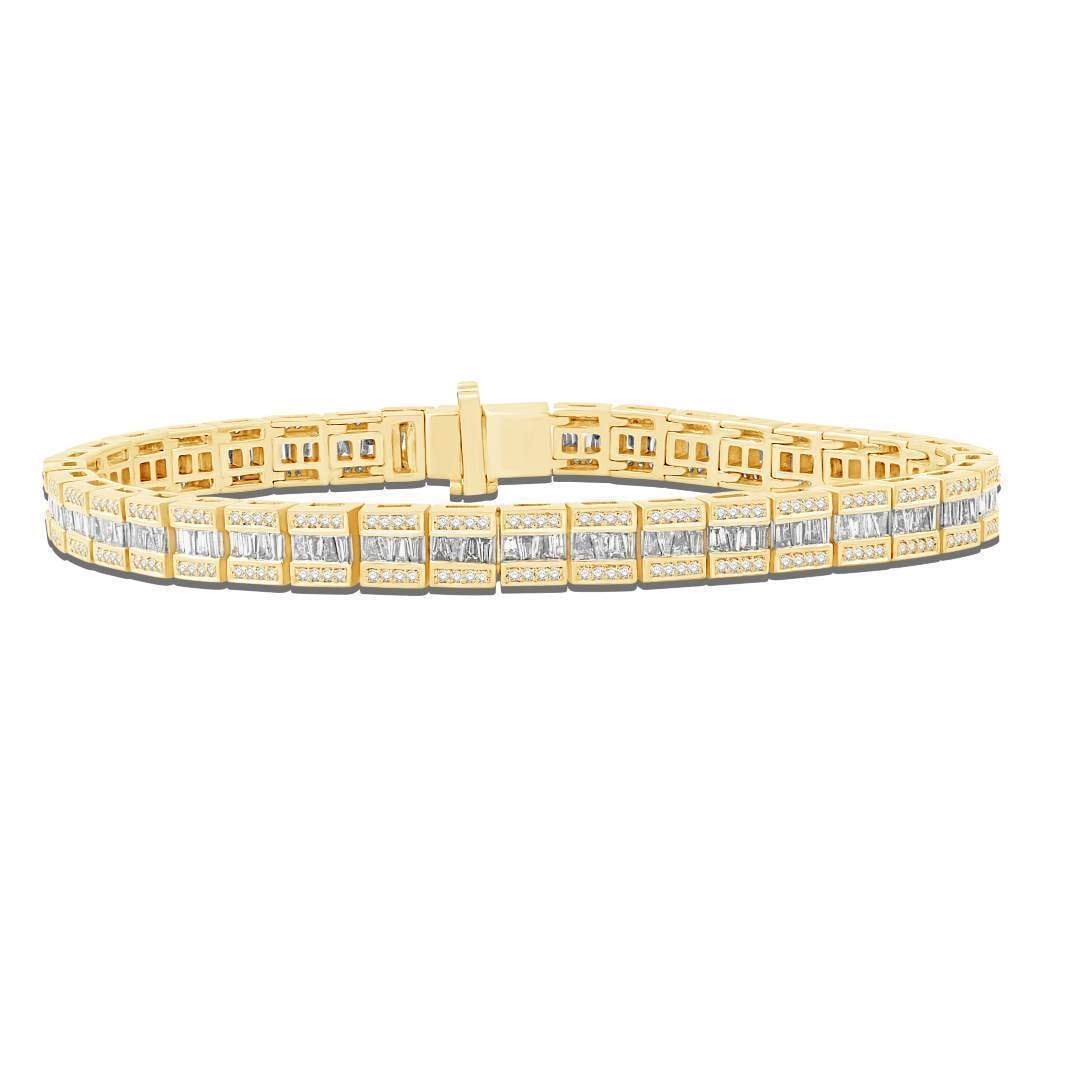 10KT Yellow Gold 4.53 Carat Round and Baguette Diamond Statement Mens Bracelet (8 INCH)-1132021-YG