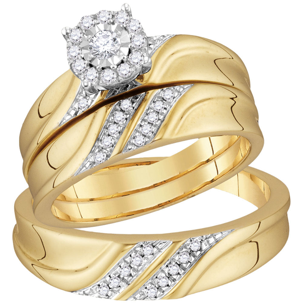 10KT YELLOW GOLD HIS HERS ROUND DIAMOND SOLITAIRE MATCHING WEDDING SET 1/3 CTTW